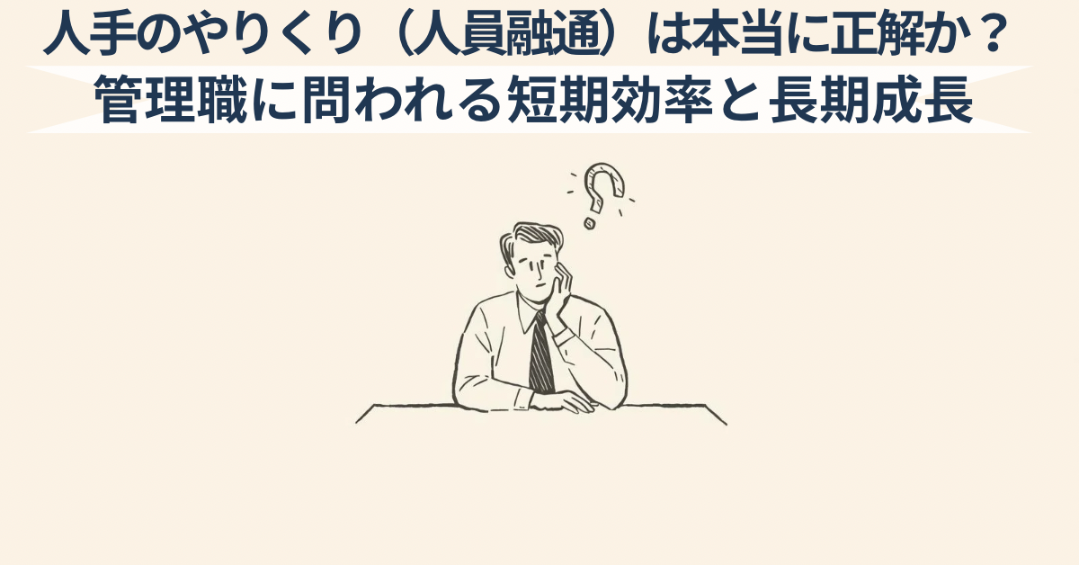 部署間の「人手のやりくり(人員融通)」は便利な解決策ですが、繰り返すと組織の成長を止めかねません。現場体験をもとに、管理職が考えるべき短期効率と長期成長のバランスを問いかけます。 -